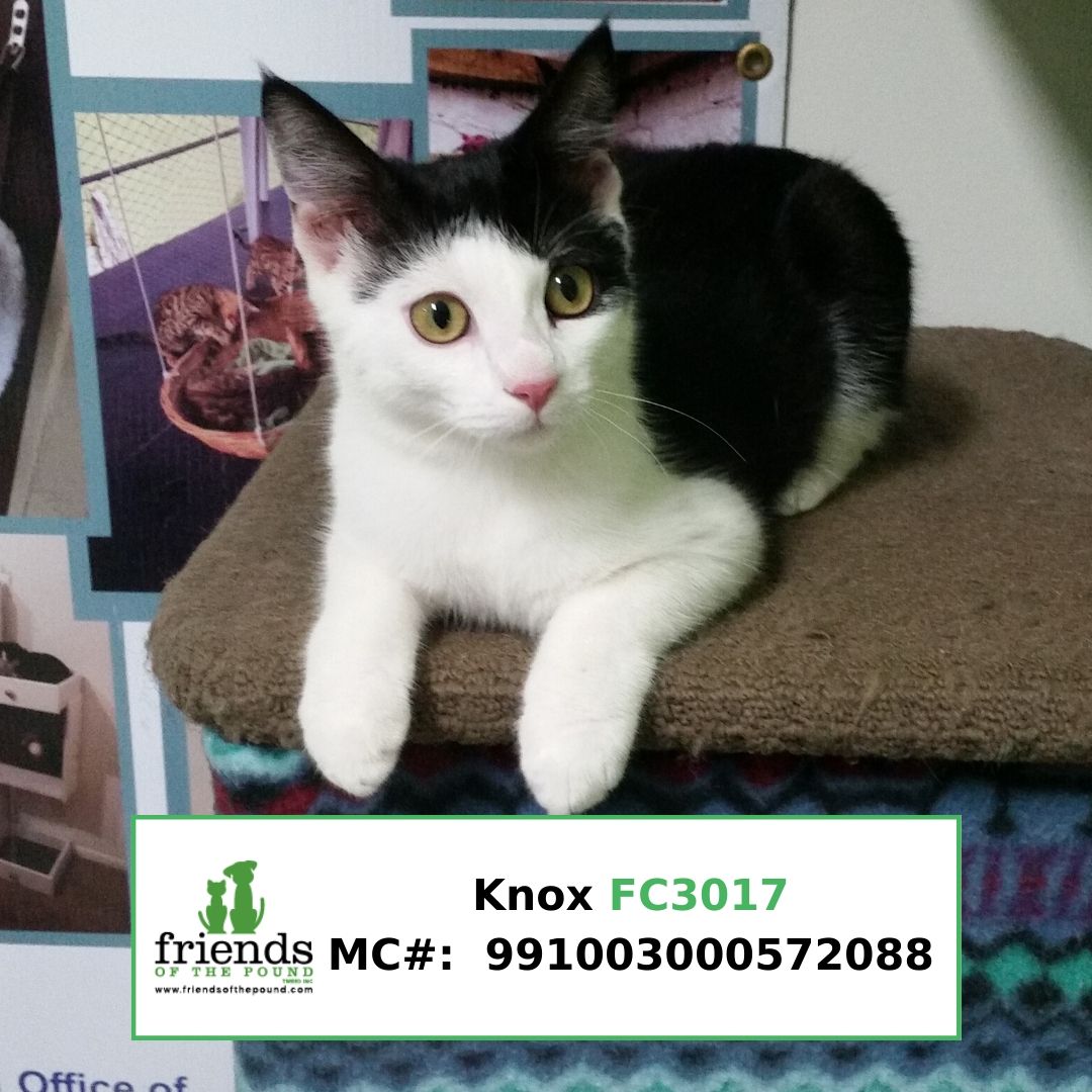 Knox is a friendly, playful kitten who would be best in an adult only home or family with older children.