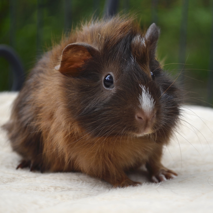 Chockita was born to rescue pig Curly, on the 13.1.20. She has 1 brother named Pepe, and two sisters; Betsy and Adeline. Chockita is a lovely Abyssinian guinea pig, with usual chocolate colours in her coat (inherited from her mum) and of course that super cute white stripe on the nose!