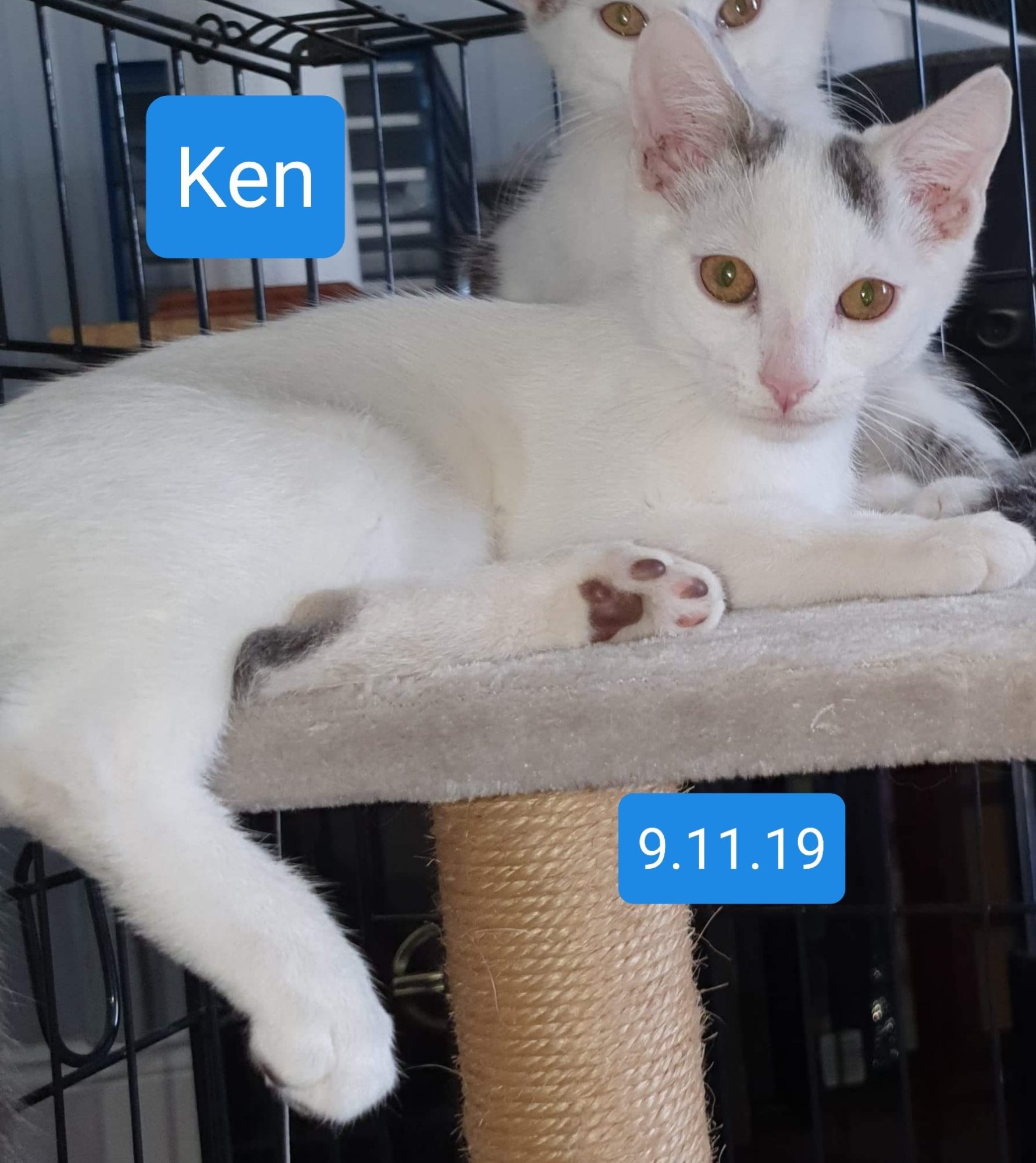 Ken's date of birth is 9 November 2019. He is a confident, affectionate and adventurous fellow that loves to get in the mix and play. Ken has a quirk with a bend in his tail at the base of his spine. This does not affect him and it is thought his tail may have been broken in the womb.