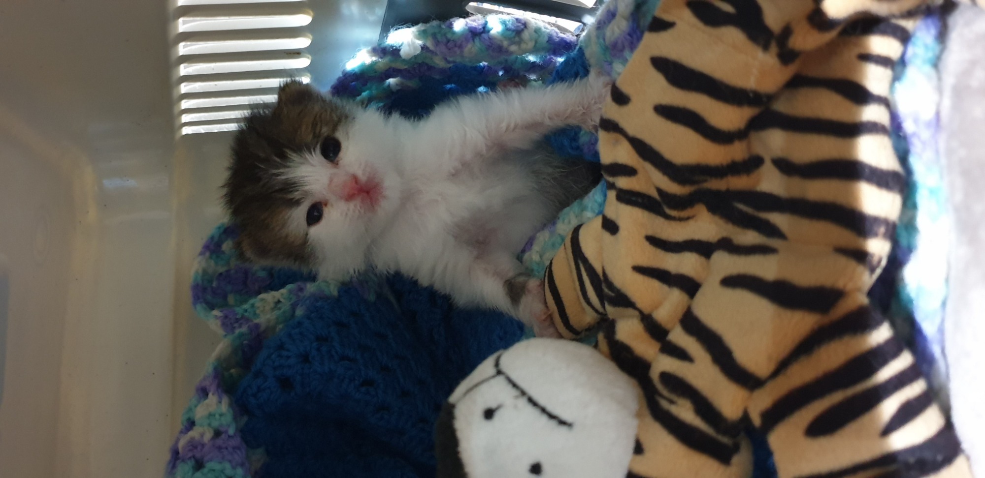 I live in a foster home with 4 older cats and 1 other kitten, my foster sister Divine, with her we spend hours playing and running around the house. At nap time i choose mum's lap. I may be little and active but i am very cuddly and love being held on mum's arms.