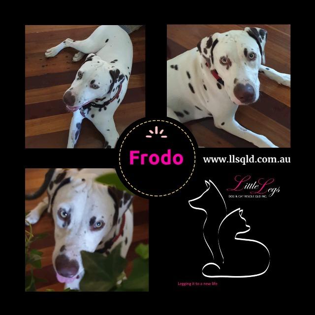Frodo delights with water and walks with a harness. He has settled well into care with two dogs, cats and older children.