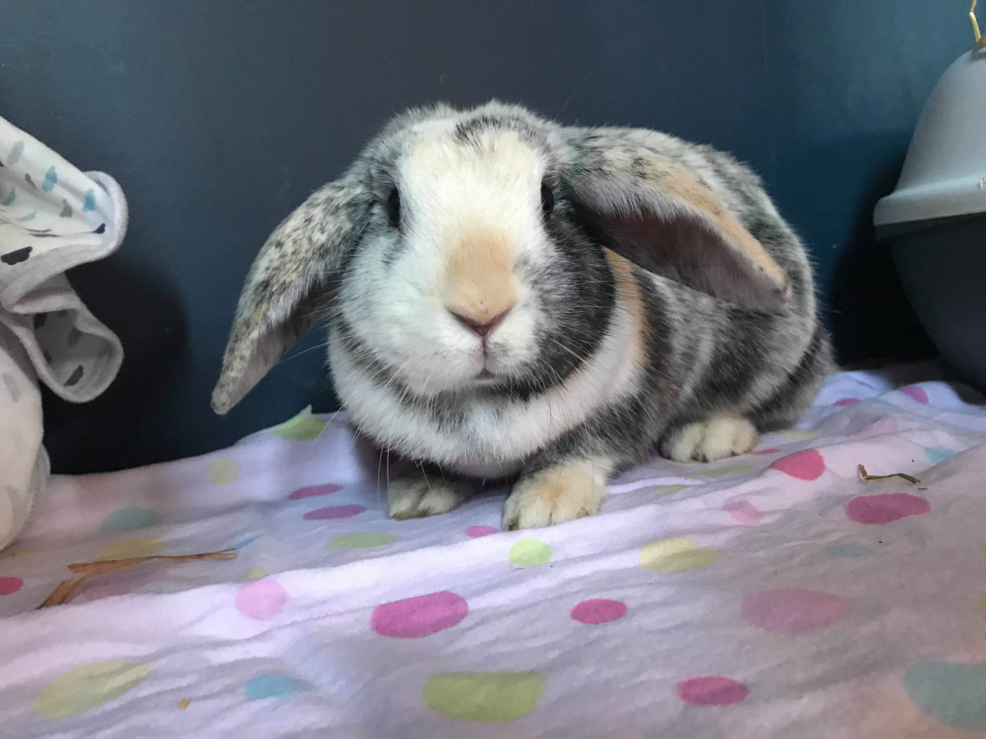 This is Loretta, a one year old Harlequin lop. Loretta is a super cute and mischievous girl who loves to play! She doesn’t mind a head scratch but would prefer not to be picked up. She would love a husbun and has shown interest in interacting with other bunnies. She would require a secure pen as she is surprisingly nimble!