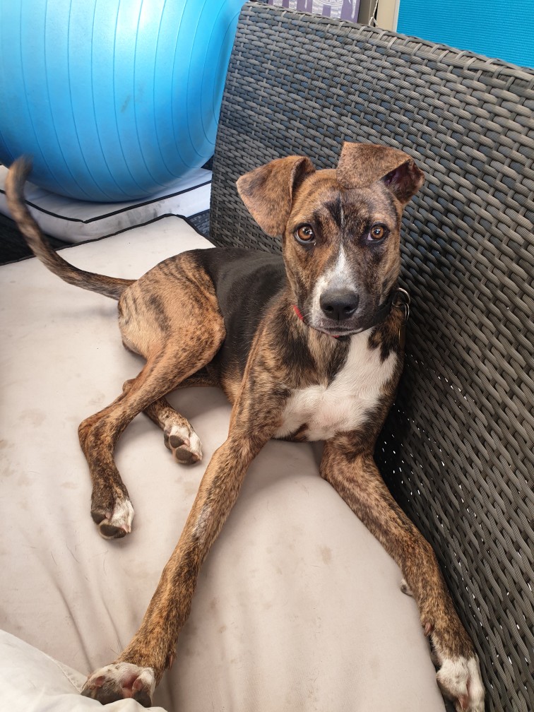 Tika came into foster care a very shy and timid girl. After 2 weeks with her foster family she has begun to come out of her shell and is becoming more trusting and playful. She is a little unsure of new people and loud noises but with some extra attention spent socializing her, she would overcome this. Tika loves her foster brother staffy and would be good with another dog to look up to and learn from. She would also be fine with kids. She is very gentle when she plays and loves soft toys. After a few tries getting her to walk on a lead, she is already walking nicely without pulling. Tika has not been tested with cats. If you would like to meet this pretty girl and give her the home she deserves, please fill out an application.