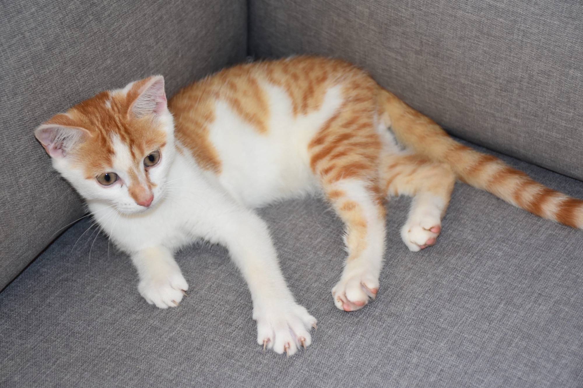 Roger is a playful friendly kitten who just loves to run and come back for purry smooches and cuddles when called. He is a lovely white and ginger kitten.