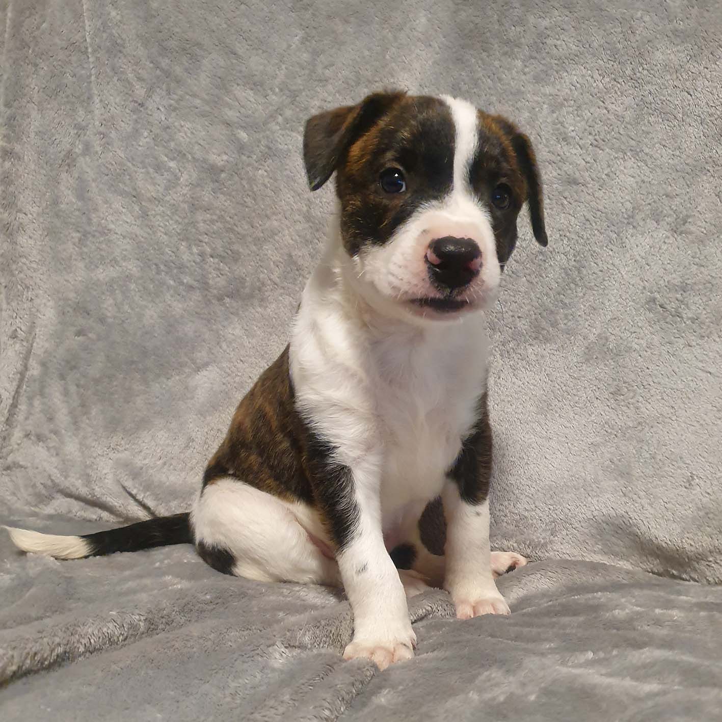 I am an active pup that loves to wrestle with my siblings and foster siblings. I also love to chew my chew toys and like to follow balls along the floor. I am great with kids and love my play time and cuddle time with foster family.