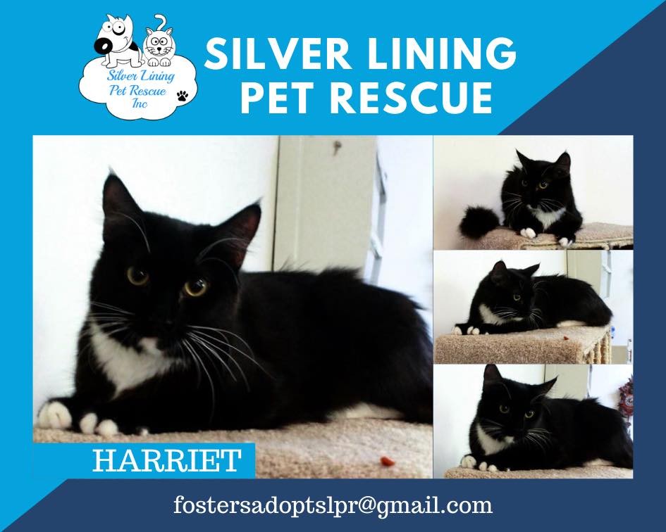 Harriet came to the rescue from a pound.She is a lovely cat with a fluffy tail.She is a bit timid but is friendly.She gets on well with the other cats and dog.