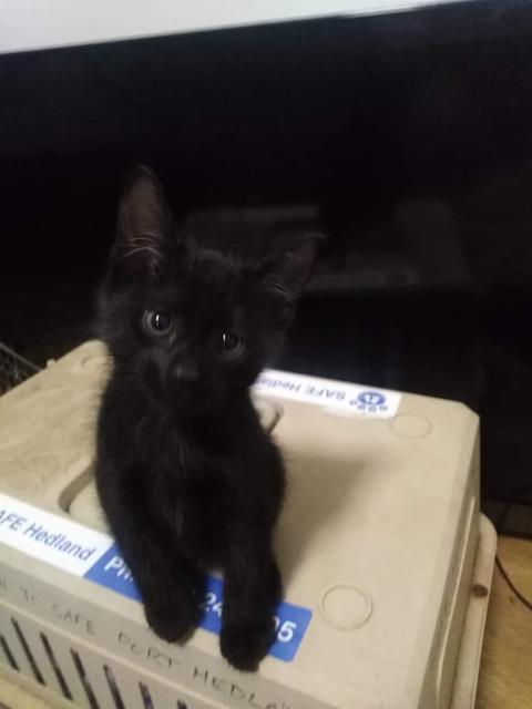 Sweet and fluffy black kitty that loves to love. In foster care with brother Loki, older foster sister Darla, resident cats, dogs and chooks. Not much fazes this little guy - loving domestic life, free food and cuddles.