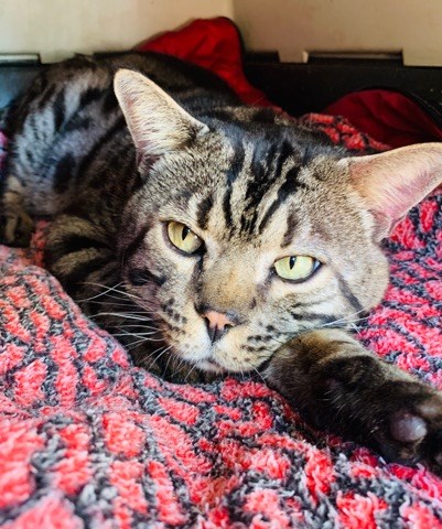 Zorro is a very unique cat with lots of unique and unusual features. Firstly, he is a pure breed Bengal cat. He was originally from a pure breed Bengal breeder. He is a very masculine cat - with a big giant head! He is a real mans cat! He weights 9 kgs already, but he is quite skinny. We have been working on fattening him up. So be prepared. He will be a big cat. He is very vocal - like a typical Bengal! He is nervous of new people, but once he gets to know you he is very loving. He is very affectionate and will almost knock you over when he head bumps you. He is not great with other cats. He has a large appetite being a big cat. He uses his kitty litter tray well.