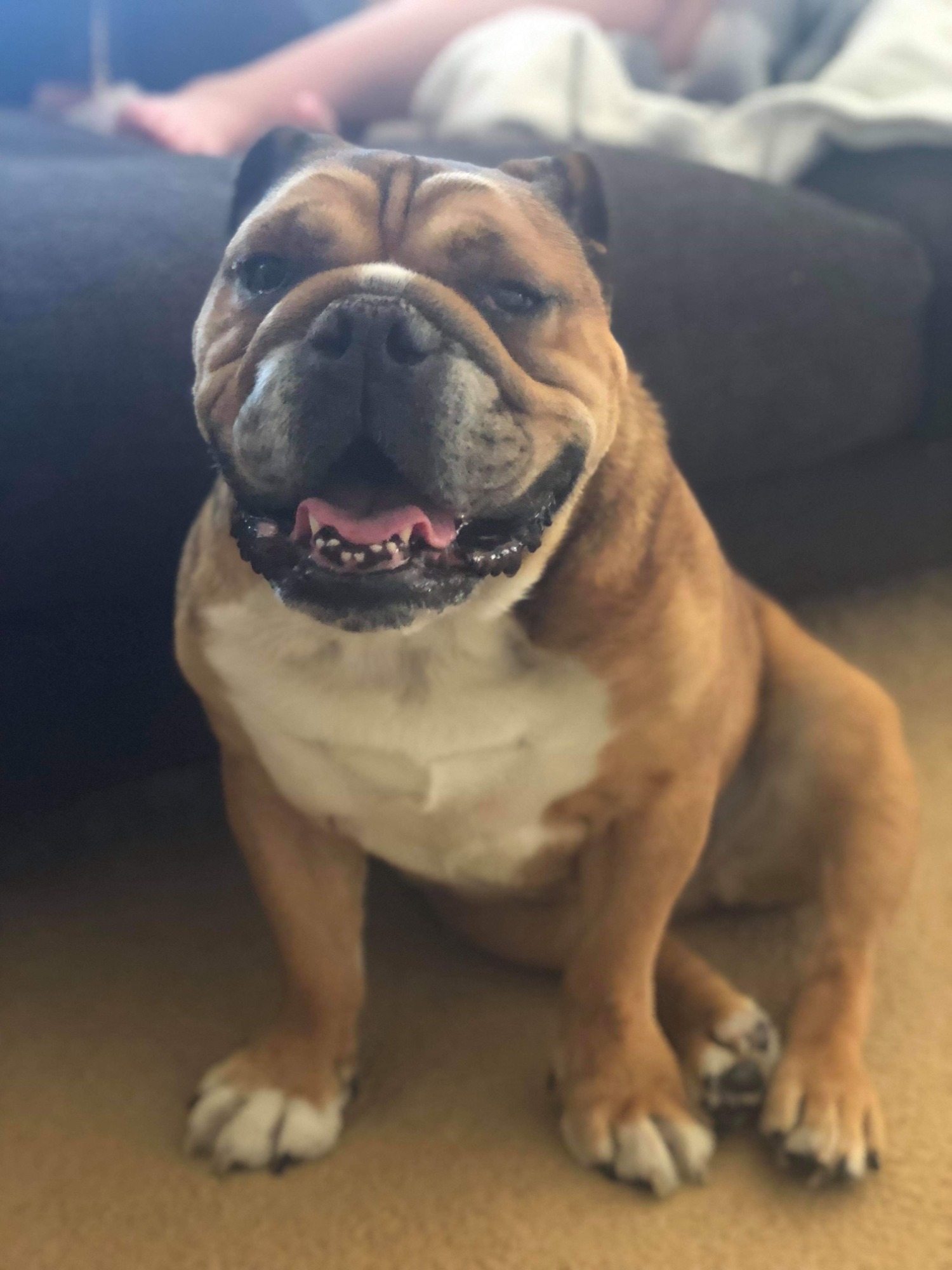 Hi I’m Loula, but my friends call me Lou. I’m an 7-year-old British Bulldog - adopted through Mini's Bulldog Rescue by my current family 18 months ago, but they are moving to London and the vet said a long-haul flight wouldn’t be in my best interests. They are devastated because they love and adore me. Before living with these guys, I lived with another family who had little kids and due to a change in their circumstances I ended up spending a lot of time at home alone.