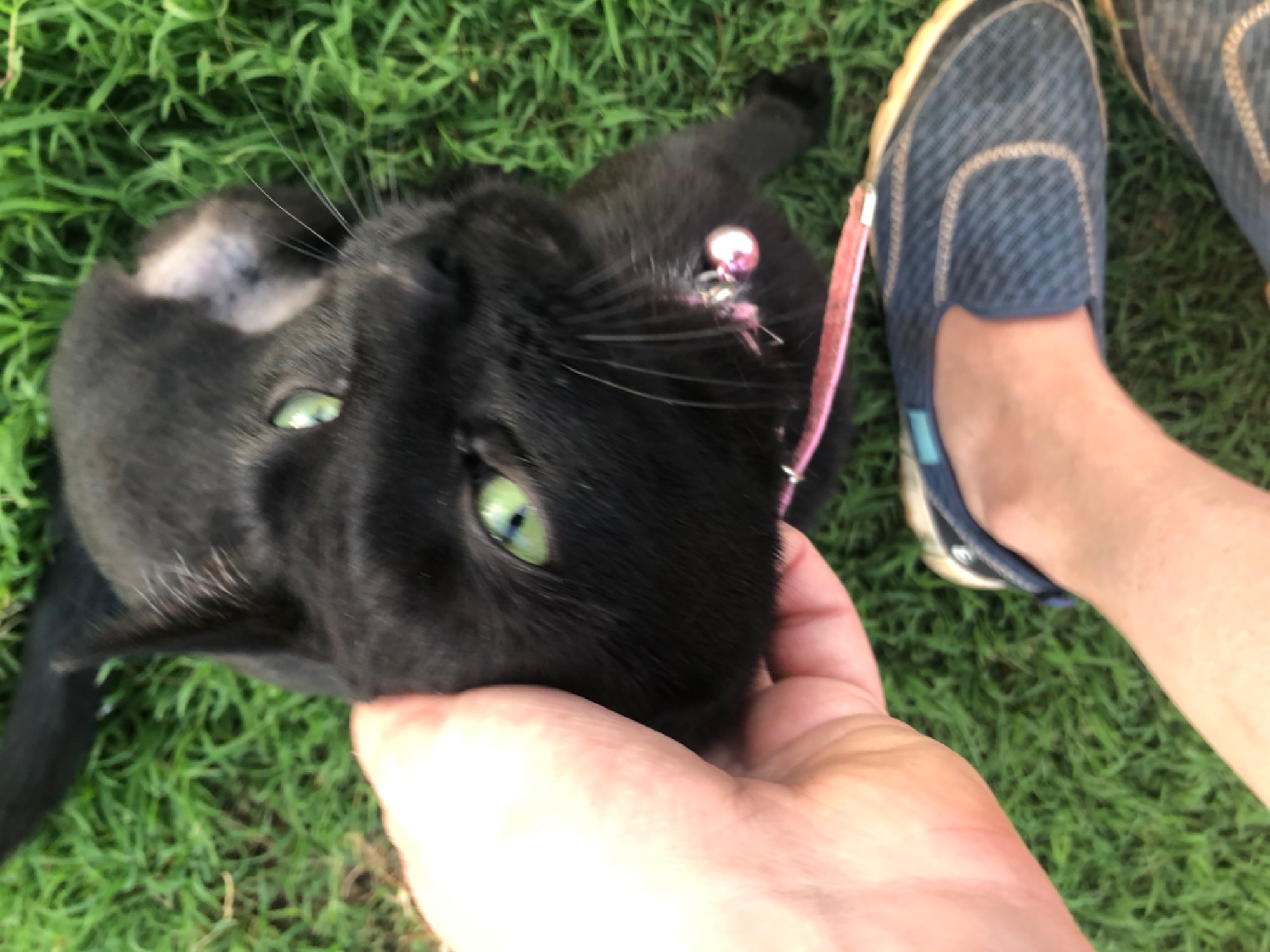 Ebony has been with us for months. Unfortunately many people avoid black cats because of the superstition that they bring bad luck. However, nothing could be further from the truth. Ebony brings joy and smiles wherever she goes! Ebony is a tad on the lazy side. She just hangs out on the back verandah with the dogs. Loves working with me in the garden and helping me hang the clothes on the line. At night she happily sleeps in her crate in the garage. Ebony doesn’t really like coming inside. So if you are looking for a lazy outdoor cat, Ebony is your girl. I have never seen her hunt or stalk birds. However, a collar with a bell would be a must.