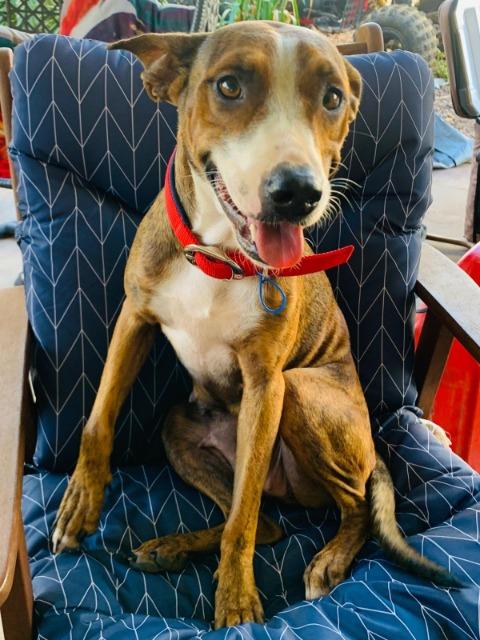 Bronty is the sweetest girl you will ever meet, perfectly suited for a family. Super affectionate, great with other dogs and children. She has not been around cats so not sure on this.