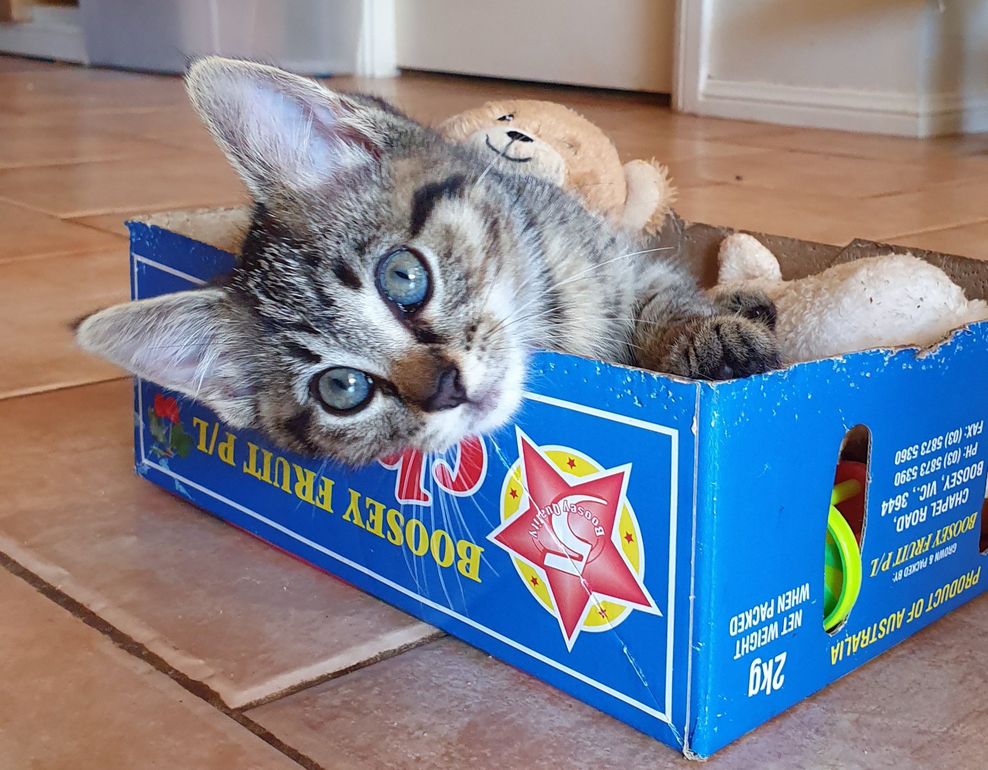 If you give her a cardboard box, she will love you forever!