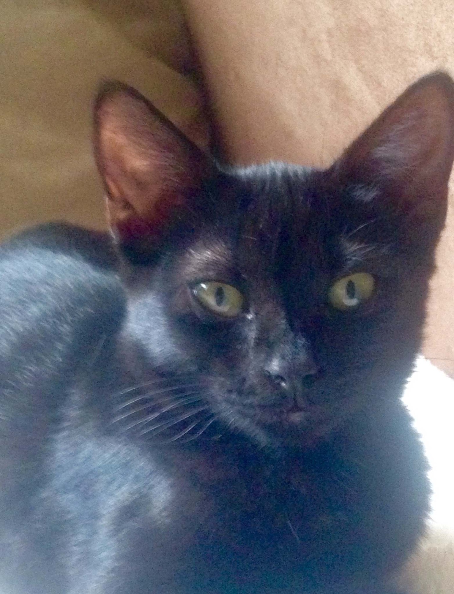 Chloe is a bit shy at first, but whrn she gets to know you she is a purr machine. She is best suited to a home without young children.