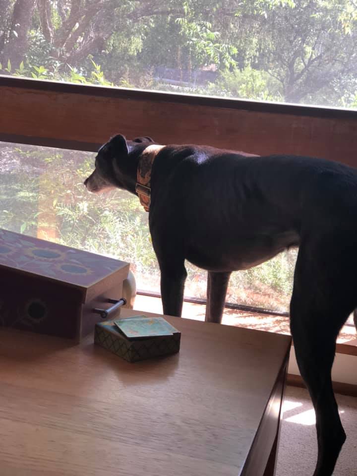 I’m quiet and well mannered in the house and I’m working really hard on my leash training. Usually I walk really well but I forget once in a while. But hey, I’ve only been out of the kennel for a few weeks. I think I’m doing really well. But there I go boasting again...but if I don’t toot my own horn I’ll never find my forever home. Here I am looking out the window, hopefully I’ll see you coming...
