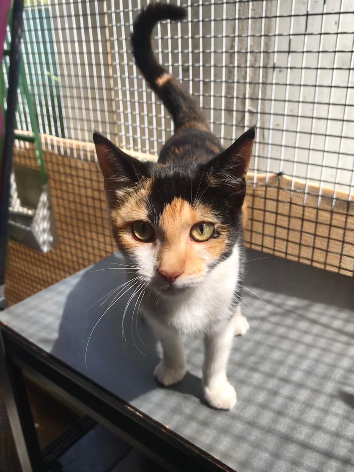 Hi, I am Meggs. I am a gentle, friendly and affectionate girl. I love to explore and I enjoy playing with the other cats at the shelter. Come in and have a play with Meggs today!