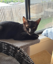 Hi my name is Ash and I came into care with my sisters. I am the shyest and am still learning that people are good but I am making progress in my foster home. I like to snuggle with my sister and play with the cat of the house. I would like a home where someone is patient with me and continues teaching me about the human world. I would also like a kitty companion that is playful with me.
