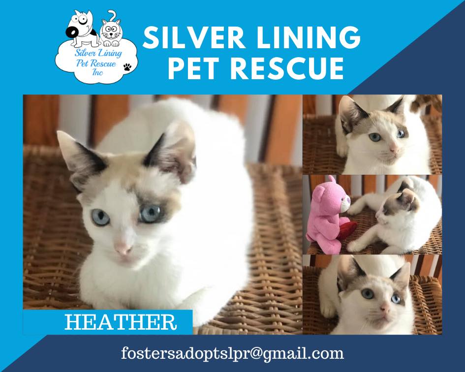 Hi my name is Heather and I am a stunning blue eye blond ( well that’s what I have been told). I am a little shy at first but I am just learning how much I enjoy cuddles. The more cuddles I get the more I want. I enjoy going to sleep cuddled up in my foster Mum’s arms, while my face is gently stroked. I always come running when I hear my foster Mum coming.