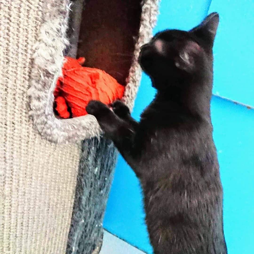Hi I'm Ninja. I came into foster care with my 3 siblings after each of us was trapped individually in a persons backyard. We were very hungry and absolutely terrified. My carers think I am a very special girl who requires a special home. My personality is as gorgeous as my looks especially with my beautiful green eyes and black coat with white flecks throughout. I am a shy and reserved, yet extremely sweet and playful girl who requires time, patience and understanding to settle into a new environment. Then you will see my true personality blossom. Initially I may run away and hide, but I do love special treats and cuddles. I would love to snuggle up on the couch or bed with you. I happily live in foster care with other cats/kittens, dogs and my big and little foster carers. I'm an incredibly pretty, sweet and happy young lady who loves supervising what's going on. I am an INDOORS ONLY kitten, but I love it best there because I feel safe and love being near my family.