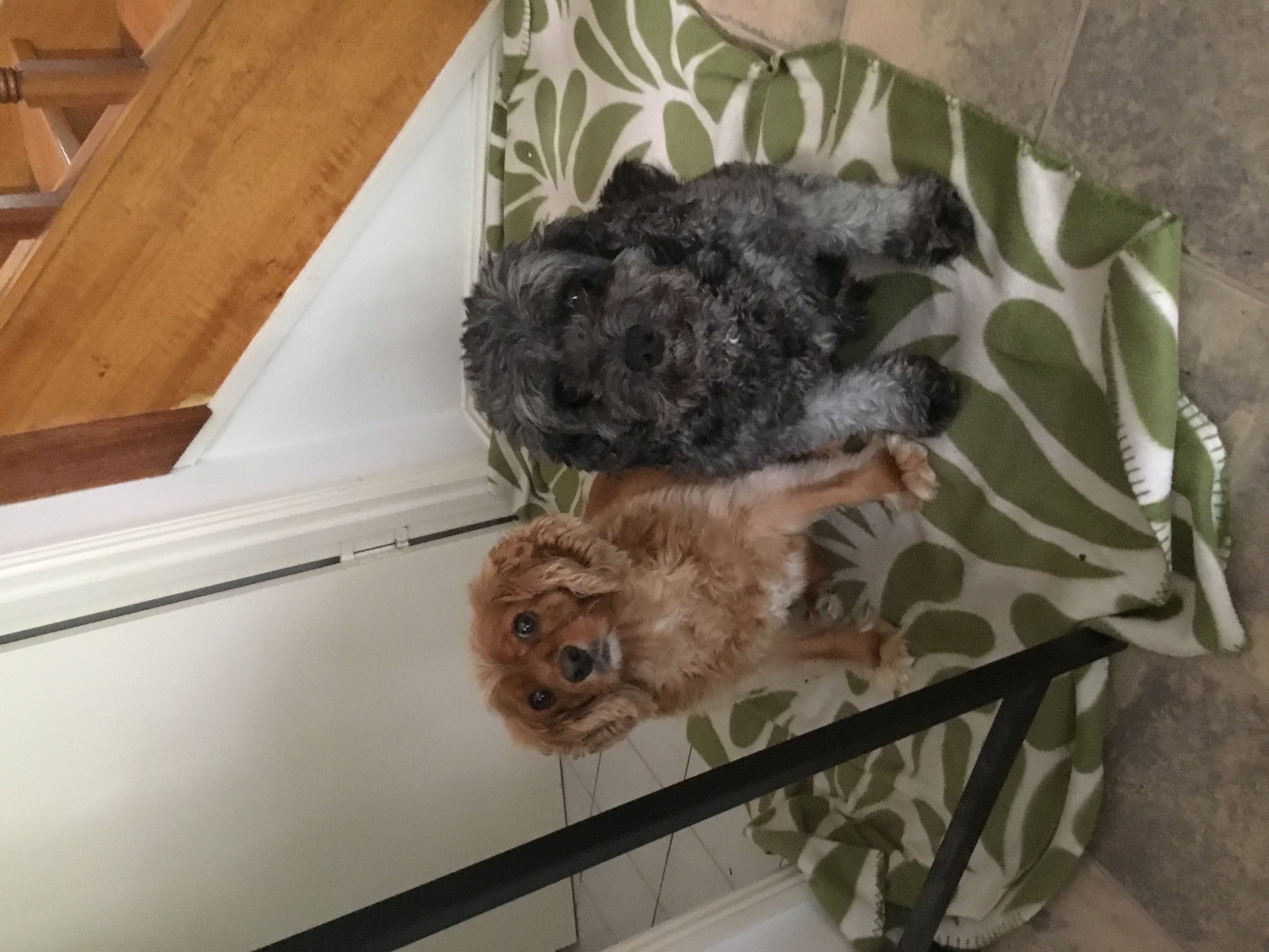 Archie is a Cavalier KIng Charles x Cocker Spaniel aged 6 years (weighs 11.7kg) and Barney is a Poodle x Cocker Spaniel aged 5 years (weighs 11.4kg). These two do need to lose a little bit of weight Both are very timid loving dogs. They love each other so much. They like to go for walks and are obedient. They have not been tested with cats. It is unknown how they are with young children.