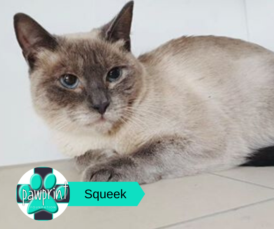 Squeak (or Chairman Meow as he is affectionately called) is one of the most handsome cats you’ll ever lay eyes on!! He has such stunning big blue eyes and a gorgeous creamy coat. He is extremely photogenic and has such a beautiful face. He often sticks a bit of his tongue out (a “blep” if you will).