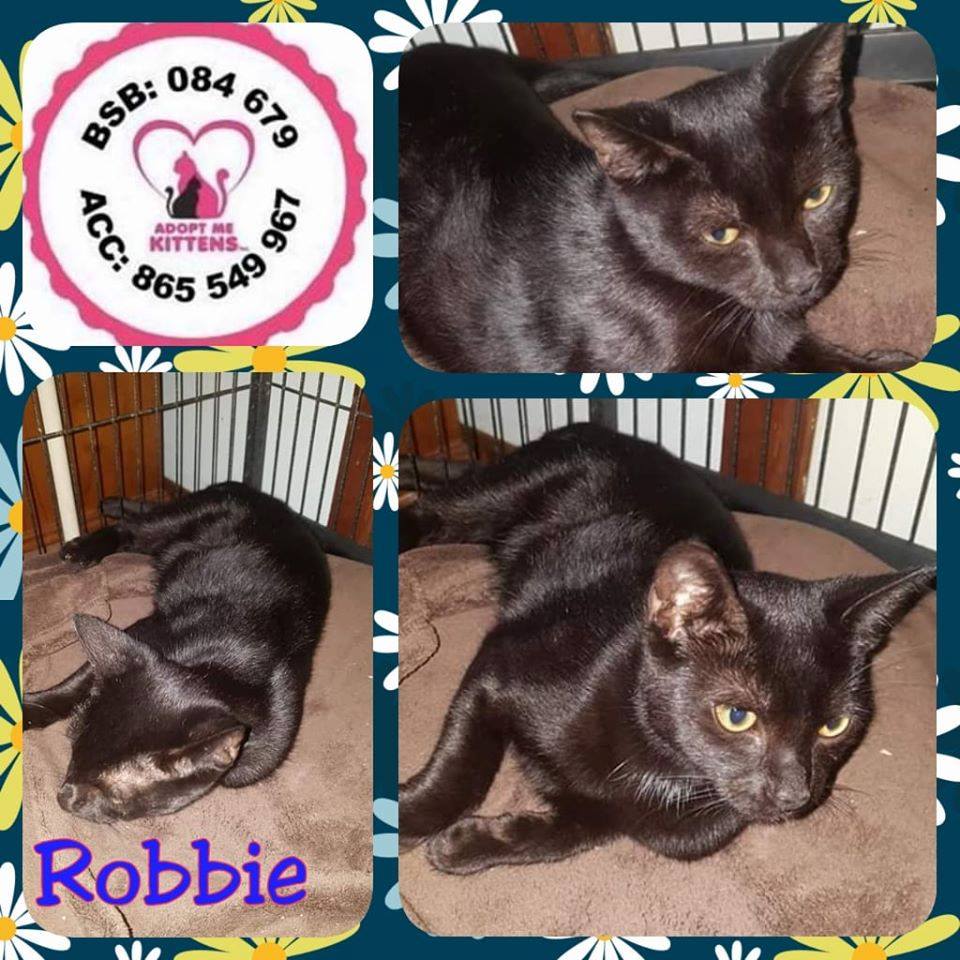 I am Robbie, a bit of a late starter as I only recently got my teeth through. However I am doing great now and so happy I got rescued. I can be a little bit of a pain loving to rub around your legs, I swear I am not trying to trip you over but I just really like a good pair of legs. I get along great with other cats but I am taking a little bit of time to get used to the dogs. They are big and like to run at me, especially when I run away from them. I dont mind them being around but I will hiss and run if they come charging at me. I have just changed foster homes and am setttling really well. I used to curl up with my old foster carer on the bed but I havent found my way to doing that in my new home yet, mainly because those two big dogs sleep in the bed too. I start off a little shy, but I am pretty easy to be picked up and I really just like being around my humans. I like sitting on the floor near them, rubbing around their legs, getting up of the counter when they are standing near. I am gonna be a super lovely companion to someone.