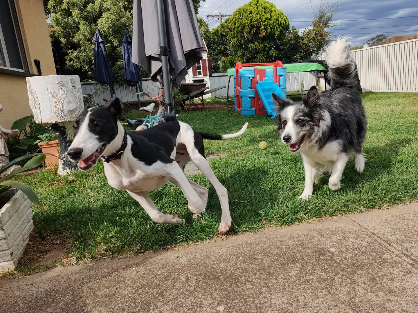 He’s so sweet and friendly. Follows his carer around the house. Really playful and likes to fetch. But also happy to just chill. Likes other dogs too.