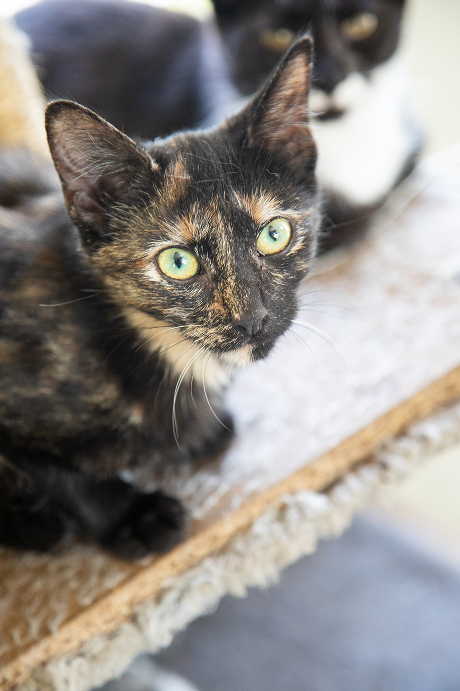 My name is Esme I was dumped in a box with 10 other kittens and our mother outside one of the committee members house. She had lots of cats of her own and just could not afford to take on all of us as well so we went into foster care. I am a little unusual as I am an affectionate curious torti girl. I have had my operation and all my needles with the others from the kitten house and now we are ready to find a wonderful loving home. We are all loving friendly affectionate young teenage cats waiting for a special person come to adopt us. My microchip 900079000382726