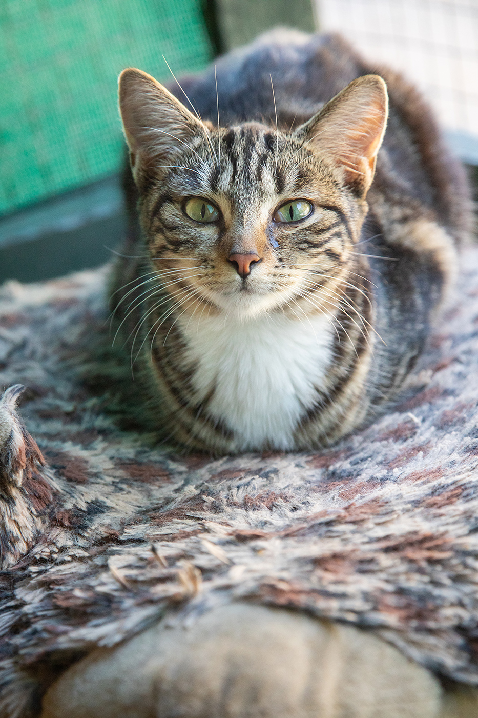 Tiggi Tirri and Tilli were found in a park near some flats they were taken to a pet shop who said they could not take then as they all have a twisted or kinked tail and were not perfectly normal kittens. The vet has said it is probably inherited and as it is not affecting their behaviour or their bodily functions and that in every other way they are perfectly normal cats. Tiggie can be a little shy when she meets strangers for the first time but as soon as she gets to know you she turns into beautiful affectionate smoochy cat. She is a normal playful curious mischievous young cat. Like her sisters she did find a loving home but it became to noisy for her with the advent of young children with their high pitch screaming as they played. To get away from the noise she would go and hide. Since she has been back she now comes forward to greet you and to enjoy being stroked and petted. She is a lovely loving cat. She has been desexed micro-chipped and immunised ready to be adopted. Her microchip is 900079000382737