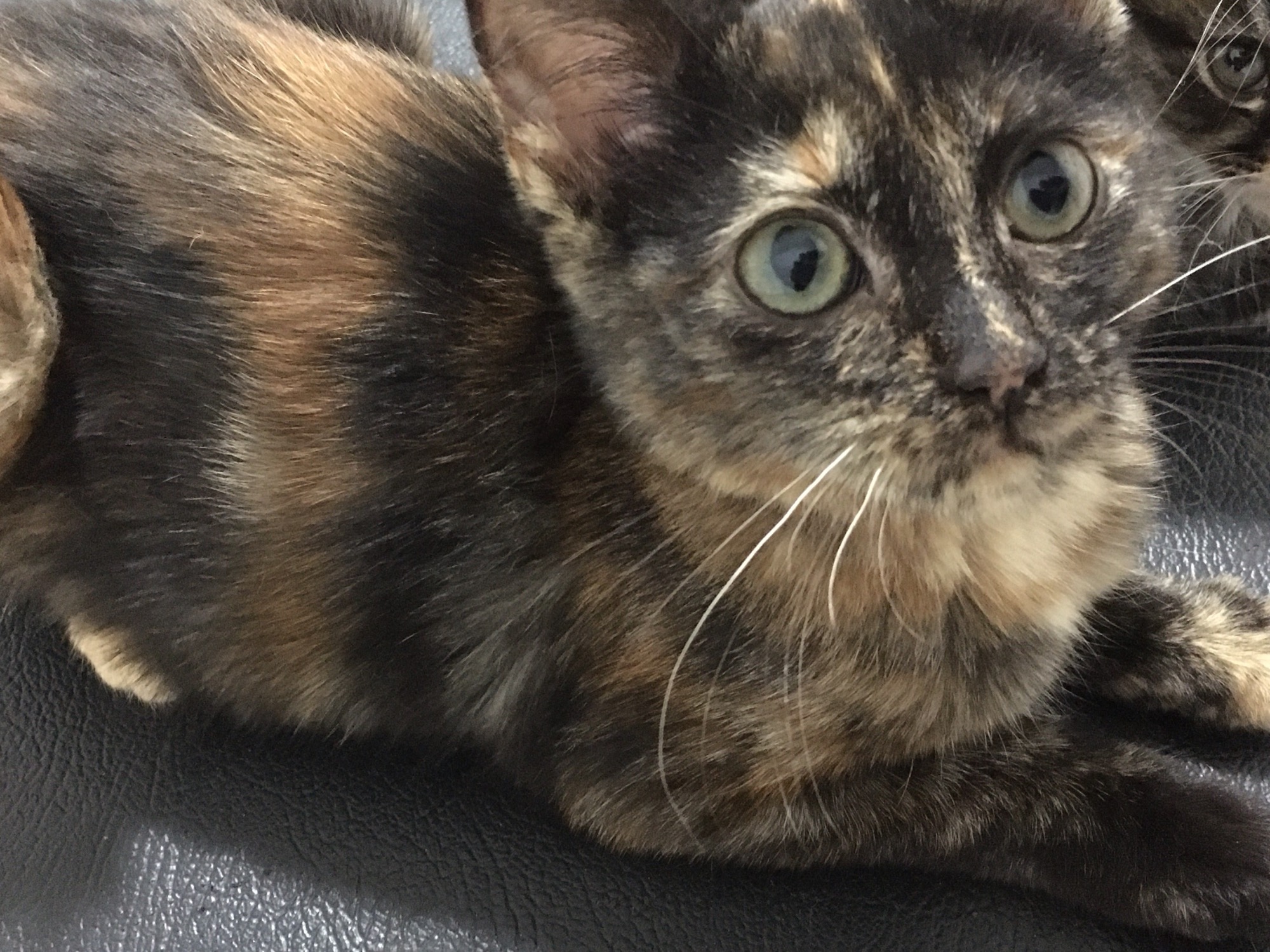 Once you have Ripley in your arms, she melts into your body and relaxes... as long as the pats don't stop. This pretty Torti with the beautiful green eyes is a petite little girl, and I don't think she will be a big cat. I do know that that she will be a wonderful addition for any family who wants a comanion cat that wants to sit on your lap and be an all round cuddler!