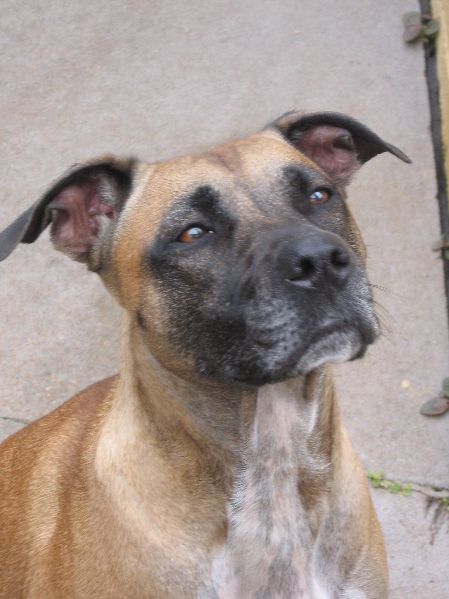 She’a a lovely, gentle smart lady; great with kids, cats and dogs. Very playful – loves tug-of-war. She loves affection. Does not do well being left alone for long periods of time.