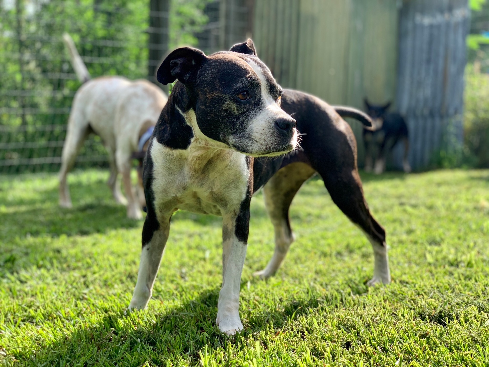 Dash gets along with all types of dogs and kids. She’s currently living in a pack of dogs at the pet resort and living with a young toddler. She’s also good with cats but can be selective. She’s a big cuddle bug who just loves life.