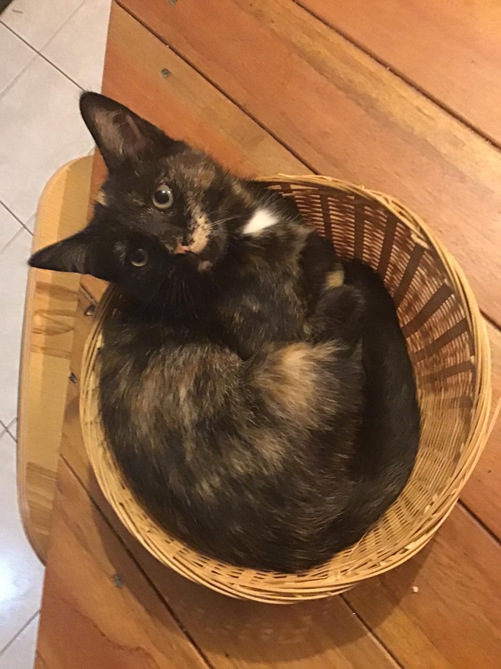 Princess is Cuddly, playful, will steal your seat, tolerates the dogs, they are both very interested in what you’re doing