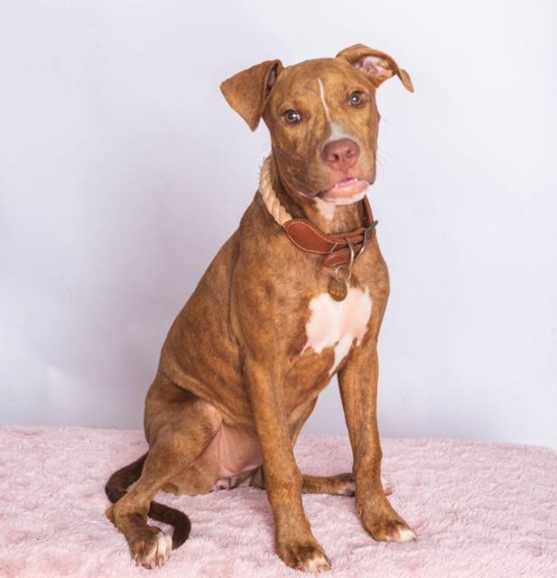 She's an orange, caramel colour with brindle - a very strikingly stunning puppy.
