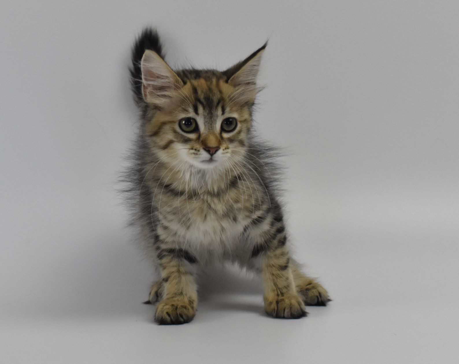 Sophie is the cutest fluffy brown tabby who although shy when you first meet her is a fun playful girl once she gets to know you. Sophie is a gentle kitten who will quickly become your best friend. She loves playing with her brothers and sister but will also join you on the bed to watch a bit of TV before lights out when she will curl up for the night. If you are after two adorable kittens have a look at Sophie’s brothers, Frankie and Tiger