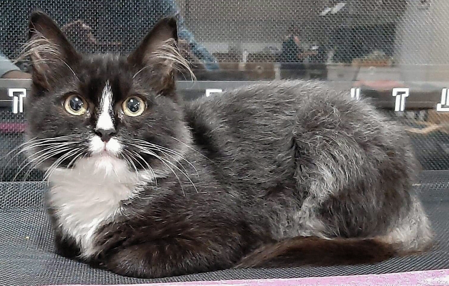 A medium-haired girl, Cookie has beautiful colouring, with a pretty black and white face with the cutest black nose, and long silky hair sprouting from her ears; she also has a lovely black fluffy tail, and - in between the two - a grey neck and body. She will be a stunning addition to any home! However, she will definitely need time to get to know and feel comfortable with her new family, so patience and plenty of strokes and love will be a must; in return you will be well rewarded given her naturally friendly nature. To keep her safe, Cookie must be an indoor-only kitty.