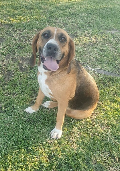 This beautiful looking girl is Betty. A three year old Bloodhound cross, possibly with Beagle by the look of her markings.