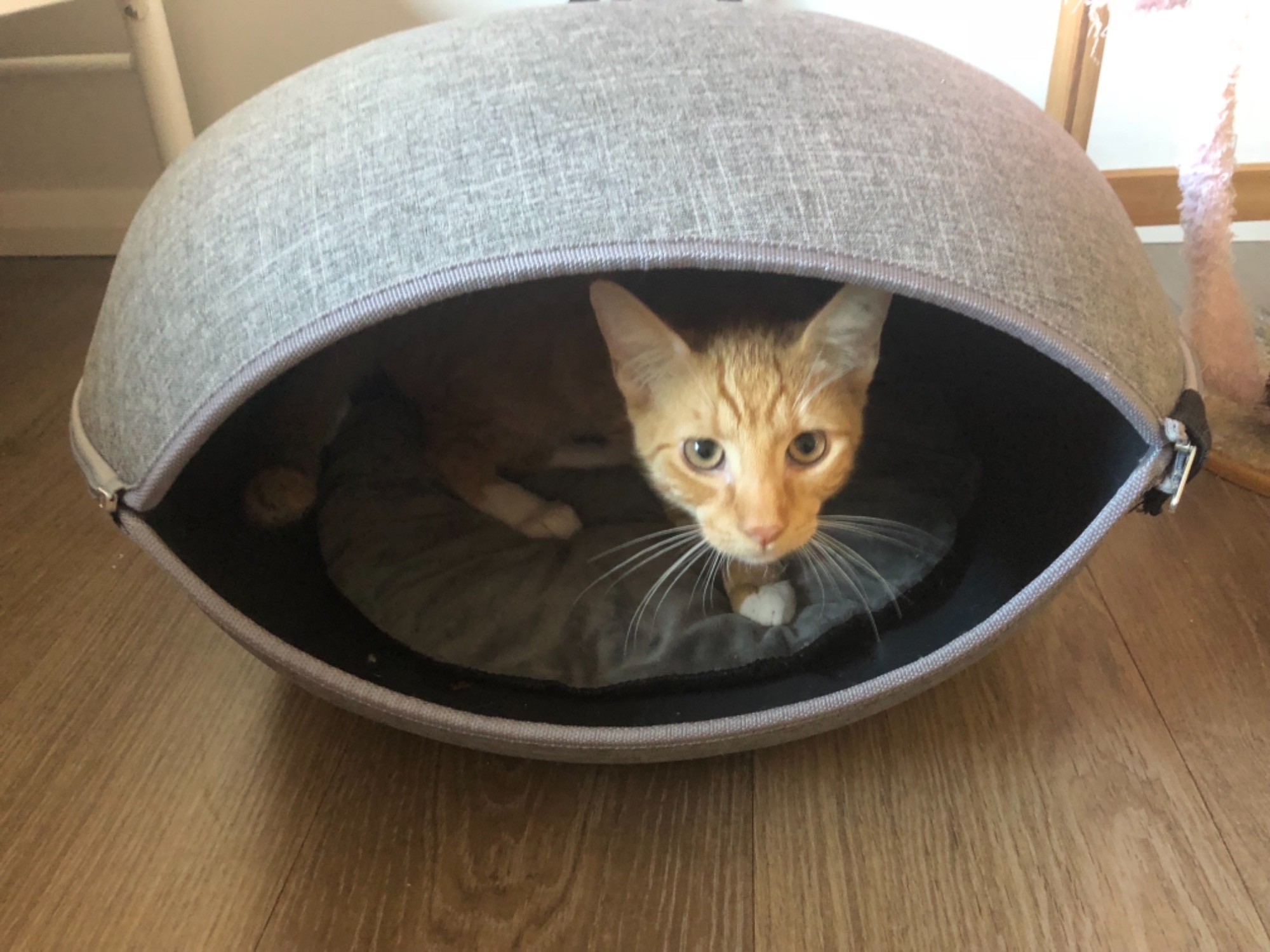 Ninja comes for a pat and you can pick him up but scares easily and would best suit a quiet home or apartment with a safe, cuddly place for him.