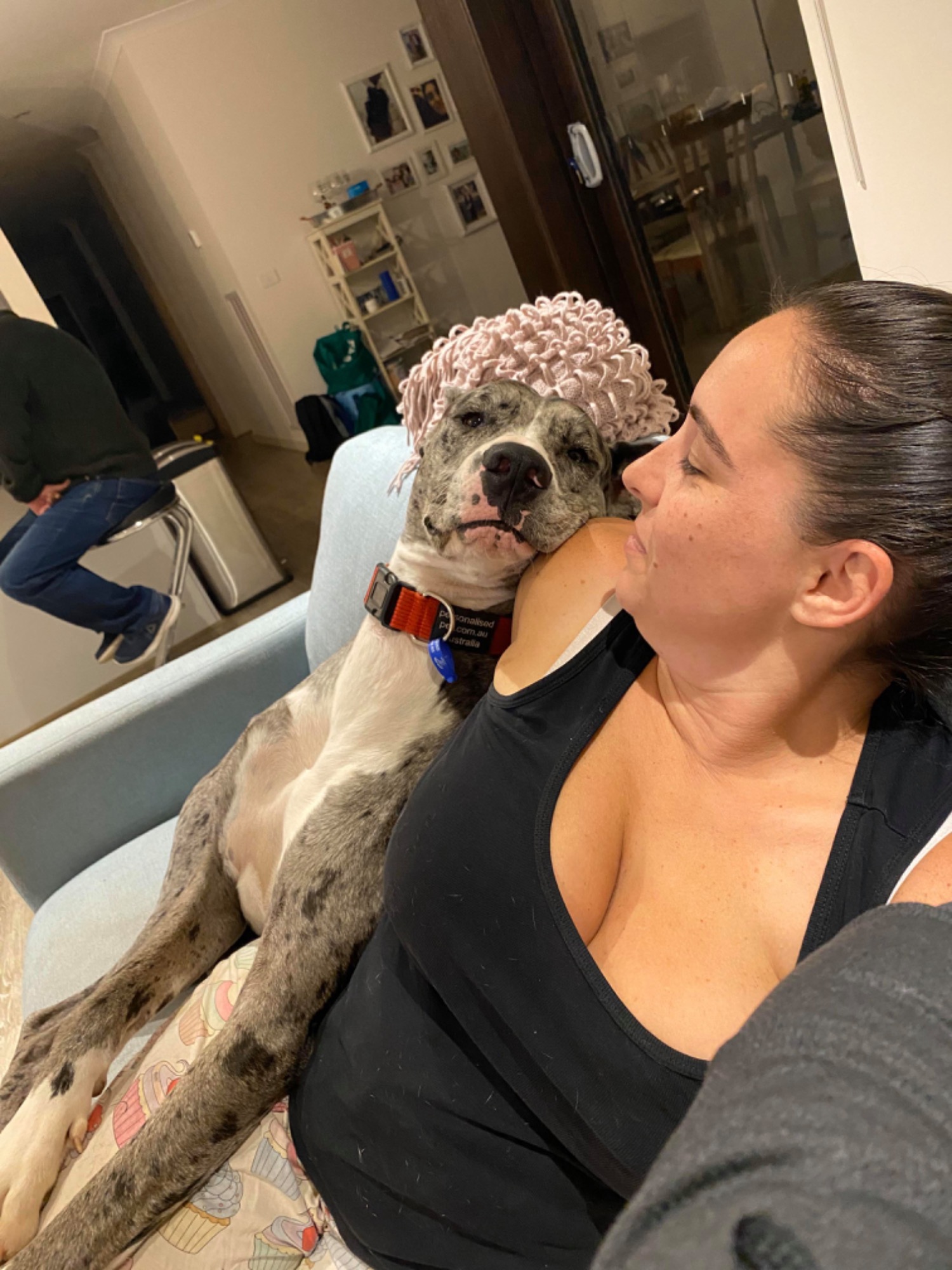 Damo is a gorgeous Great Dane X, just under 2 years young who thinks he's a chihuahua 😂