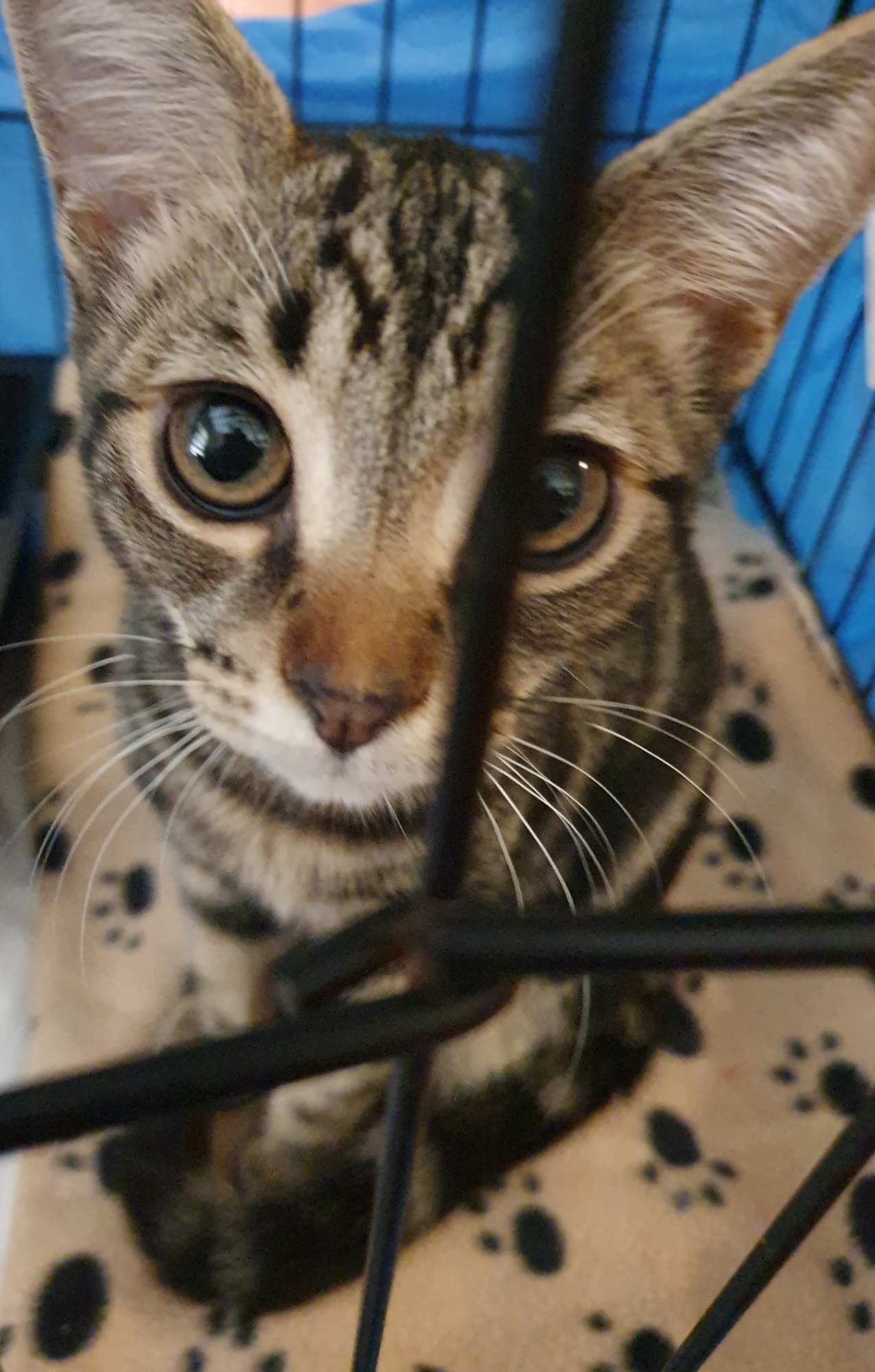 Crispin was found in a box in a warehouse when he was a little kitten at 3 weeks old. From the minute he hit the place, despite being sick at the time, it was obvious what an absolute delight this tiny tiger was. He has blossomed into a confident, active and really affectionate little boy. His smooching capacity is up there, let us tell you. Nuzzling and purring his head off as well. He likes to do his own thing such as playing with his toys, having a snooze in his fave spots but prefers on the whole to be with his foster carer, his fave hooman at present. Crispin likes other cats and probably wouldn't mind a new fur sister or brother either.