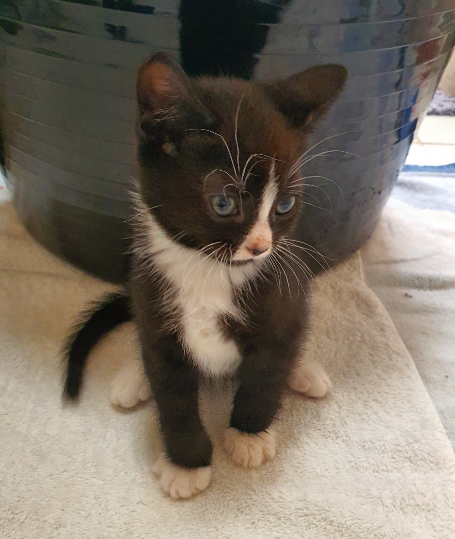 Felix is a lone wolf. He's the biggest of the litter and LOVES his food! He likes to find his own snoozing spot away from his mum and siblings and just does his own thing. He loves a little pat and will come and give a little head butt when he wants one and then troddles off exploring. He loves little kids - under 6 would be great with him