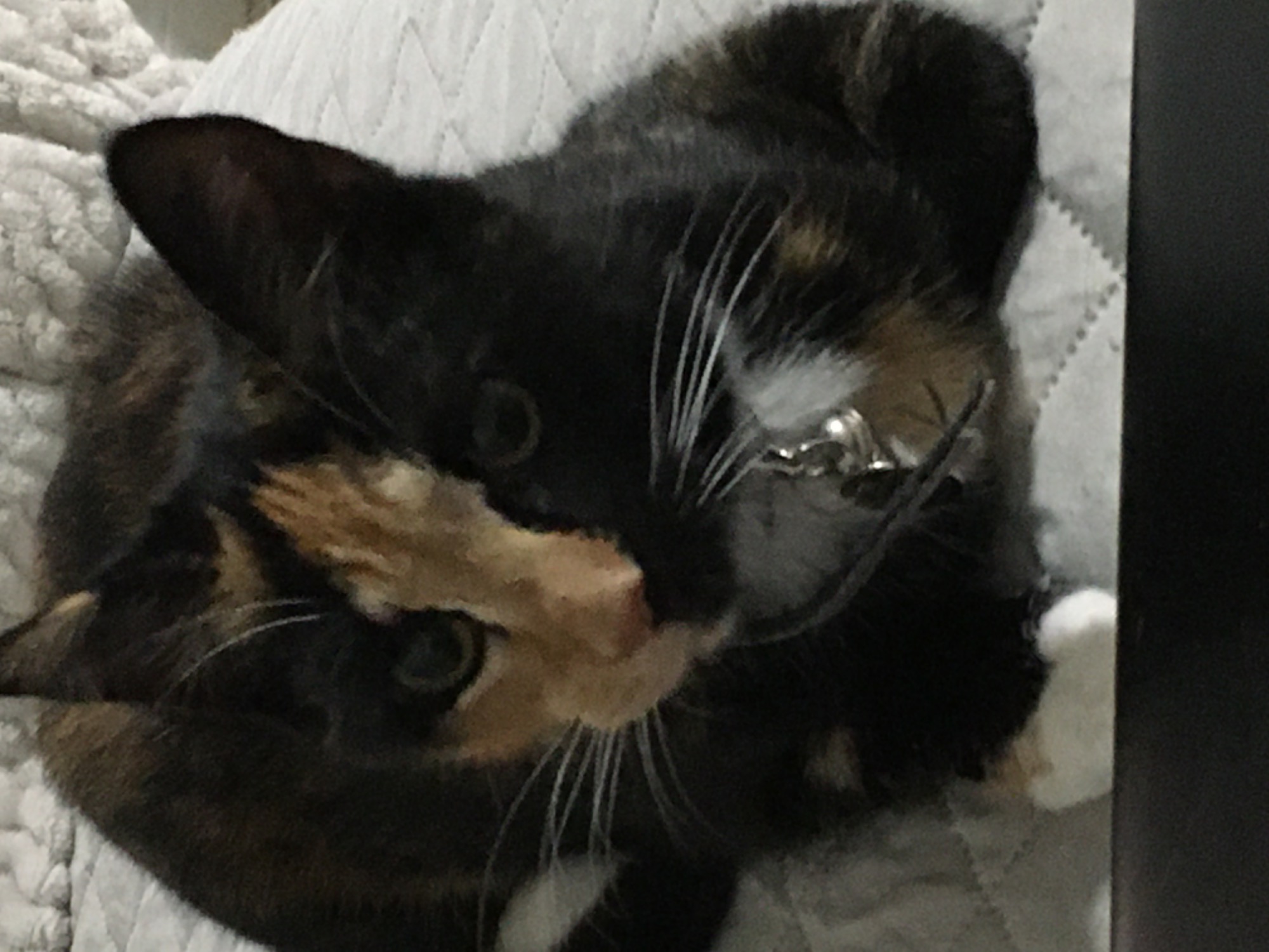 Miss Polly has now become the front door “greeter” to family, friends and potential adopters! She has such confidence with people now and is curiously checking every new visitor out! She might not be a lap-cat but she makes up for that with her outgoing personality and antics. Polly was called “Cat-Dog” today as she proudly carried a (clean) plastic straw into the room, showing off in front of adopters for another kitten!