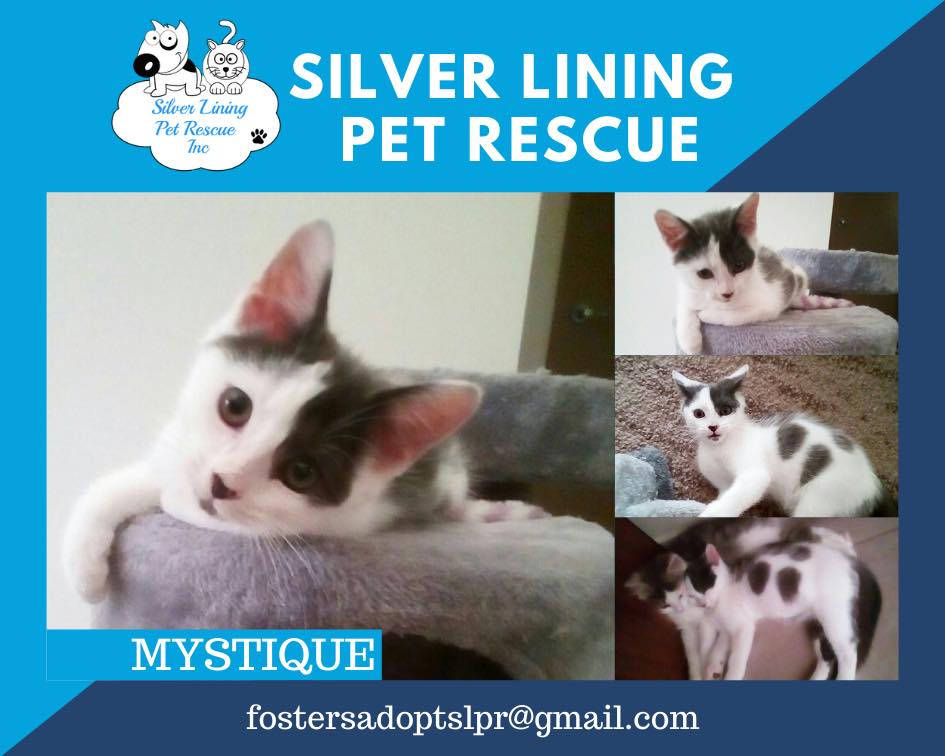 This gorgeous little girl came into care with her 2 siblings, Mischief and Mayhem. One of the 2 girls, she likes to be “mothered” by her Sister and enjoys cuddling up with her when sleep time comes. She is an adventurous kitten and plays chase with the other two – a game she instigated – and now all three join in. If they lose interest she finds a small ball to bat around and chase. She loves her food and will try almost anything going. She too loves human interaction and will curl up with you at any given chance. Her colouring is unique and her fur is very fluffy.