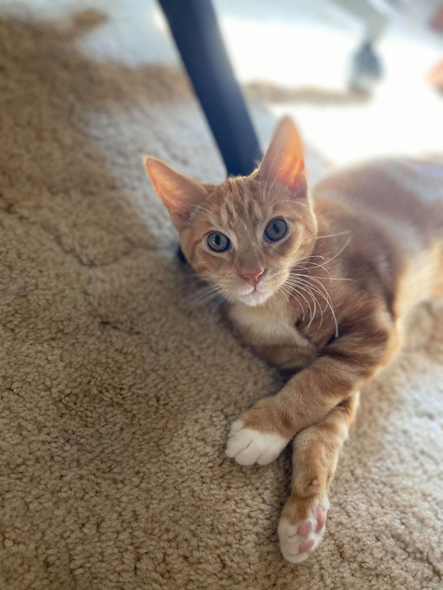 This gorgeous ginger boy is looking for love. Simba is a little king of smooching, and just loves to be loved! He enjoys kisses, booping you with his head and sunbaking in his spare time. Simba loves playing with his brothers and sisters too. This ginger is looking for his snuggle buddy, is it you?