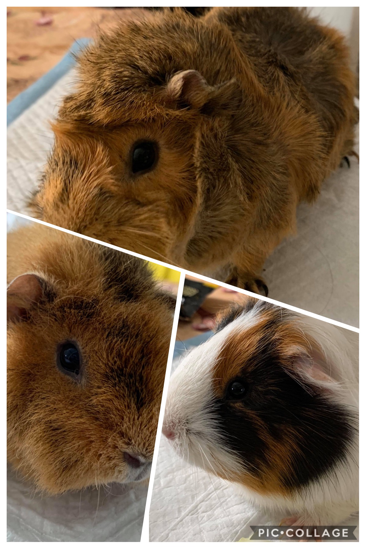 Personality: Poppy is a little shy compared to her sisters but she is still a very active guinea pig. She's become a very fast, and sneaky piggy. Sharing with Fuzzball and Bristles has taught her to be quick to get in, and sneaky in her attempts at getting food or the better hidey. She's a little younger than the other two, and has a lot more energy than them. Despite being shy, when she's really happy or has the floor to herself she can be a very fast and active piggy.