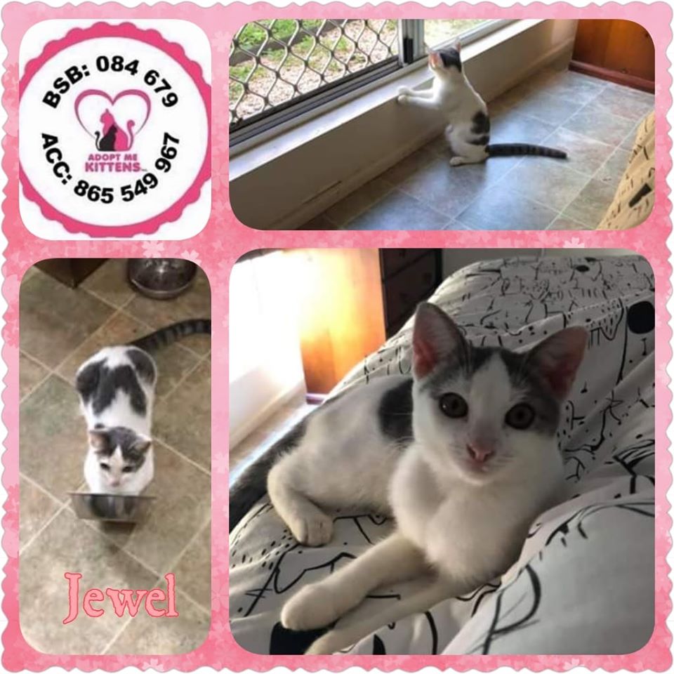 Jewel is a very pretty young lady who is growing in confidence daily. She comes when called and will call and seek you out . She loves her pats and to be close by. Curious about the world and lives window sills to watch the world go by.