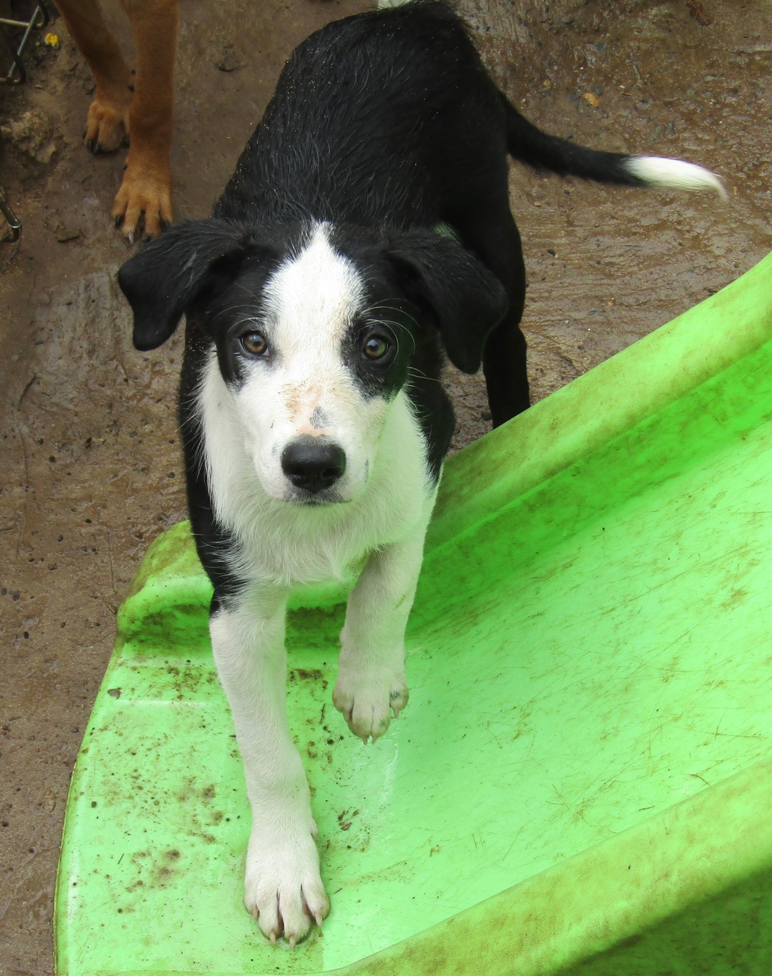 May I introduce you to Lionel who is one of a litter of 7 boys. They were reluctantly surrendered by their owner not long ago. They are all beautiful pups who survived parvo earlier this year which in itself is amazing. They all have really lovely natures are very smart they are border collie cattle either kelpie or Koolie crosses whose parents got together when their owner was away towards the end of last year resulting in their birth just before Christmas 2019.They are social young dogs as they love being with people and happily play with other young dogs. They need to go to puppy pre-school and to dog training as all young dogs do. They are like all our animals immunised desexed micro-chipped and regularly treated for all common canine parasites. 900079000630574