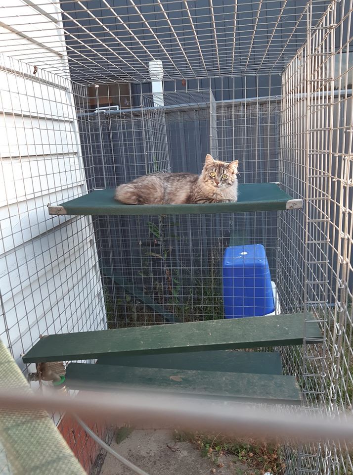 Lucy is still very shy, and will take some time to settle in, she needs a patient gentle hand to love her and show her what love is. She is so beautiful and is very food motivated, loves sitting on windowsills and watching the world go by, and we often find her sleeping on the end of a bed. She would do well with another confident kitty, as an only cat, and in a quieter household. That being said, our loud, unpredictable 5 year is able to interact with her, she will accept treats left by anyone. Lucy has the cutest little squeaky meow, and she knows it works well to get some extra treats. Lucy gets along well with other kitties