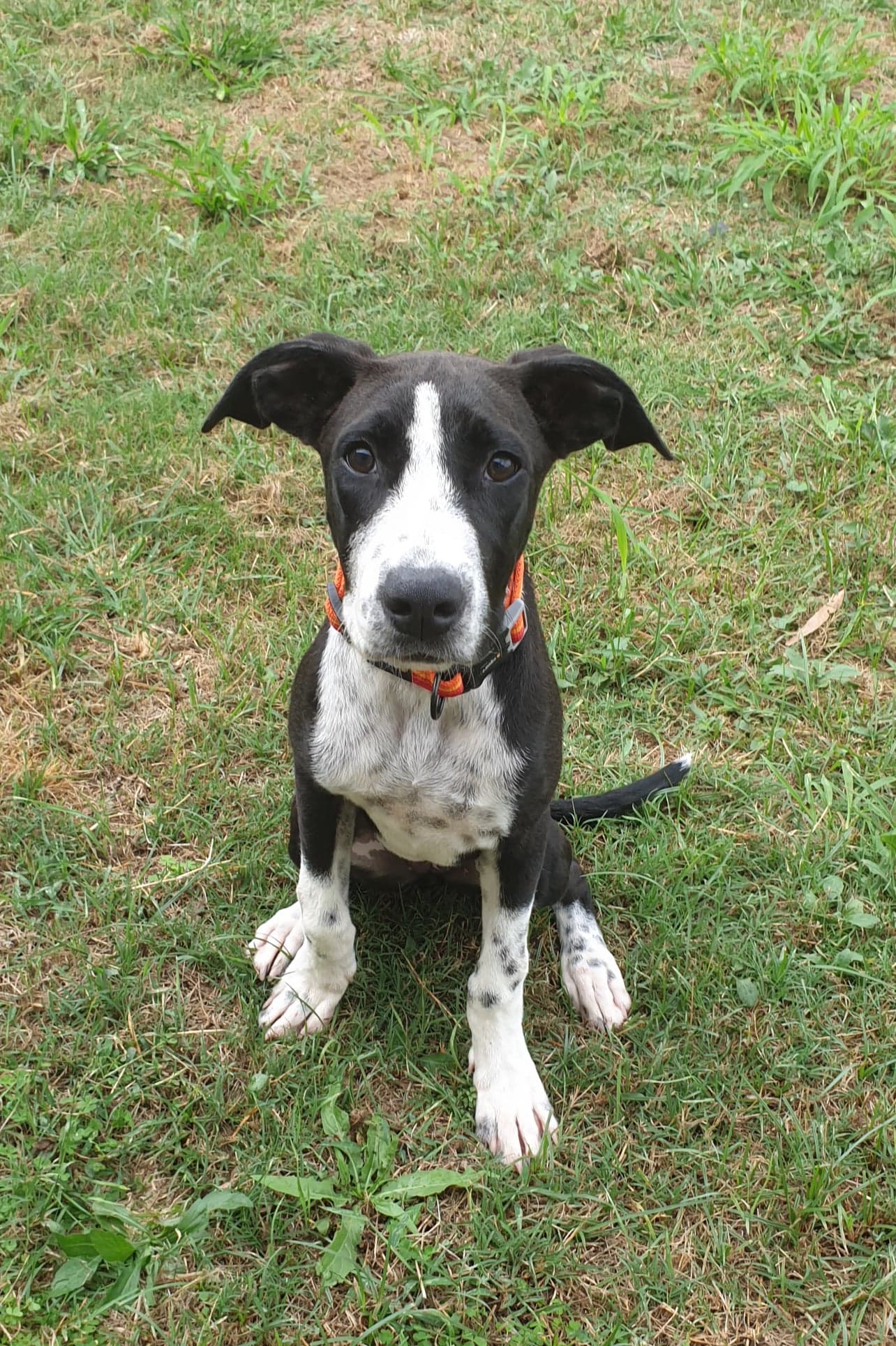 Foster Ma has been spending lots of time with me and every time I use my manners I get a treat - I hear her say 'good girl' a lot so I must be doing well. Foster Ma has 3 little humans that I adore, I love to follow them round the yard and do what ever they are doing. I just love to be with my humans. I spend a lot of my day lazing about with a big old Labrador but sometimes I wish he'd get up and play more. There are 2 fluffy things inside the house that I am so excited to meet but Ma says I have to be calm before I meet them or else they'll scratch me on my nose. I just can't wait to be their friend!
