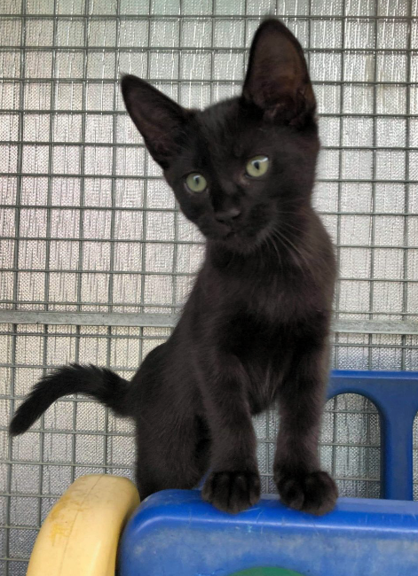 Petunia is a black beauty, long, sleek and athletic. She's very smoochy and loves to rub up and purr on her favourite person. She is a sweet, relaxed, easy going cat who likes the other foster kittens, adult cats, dogs (1 large, 1 medium) and bunny. She's unsure about being picked up at this point but is improving every day.