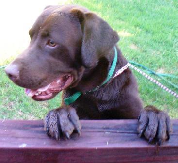 Riley is medium to large in size and has an unusual chocolate red coloring